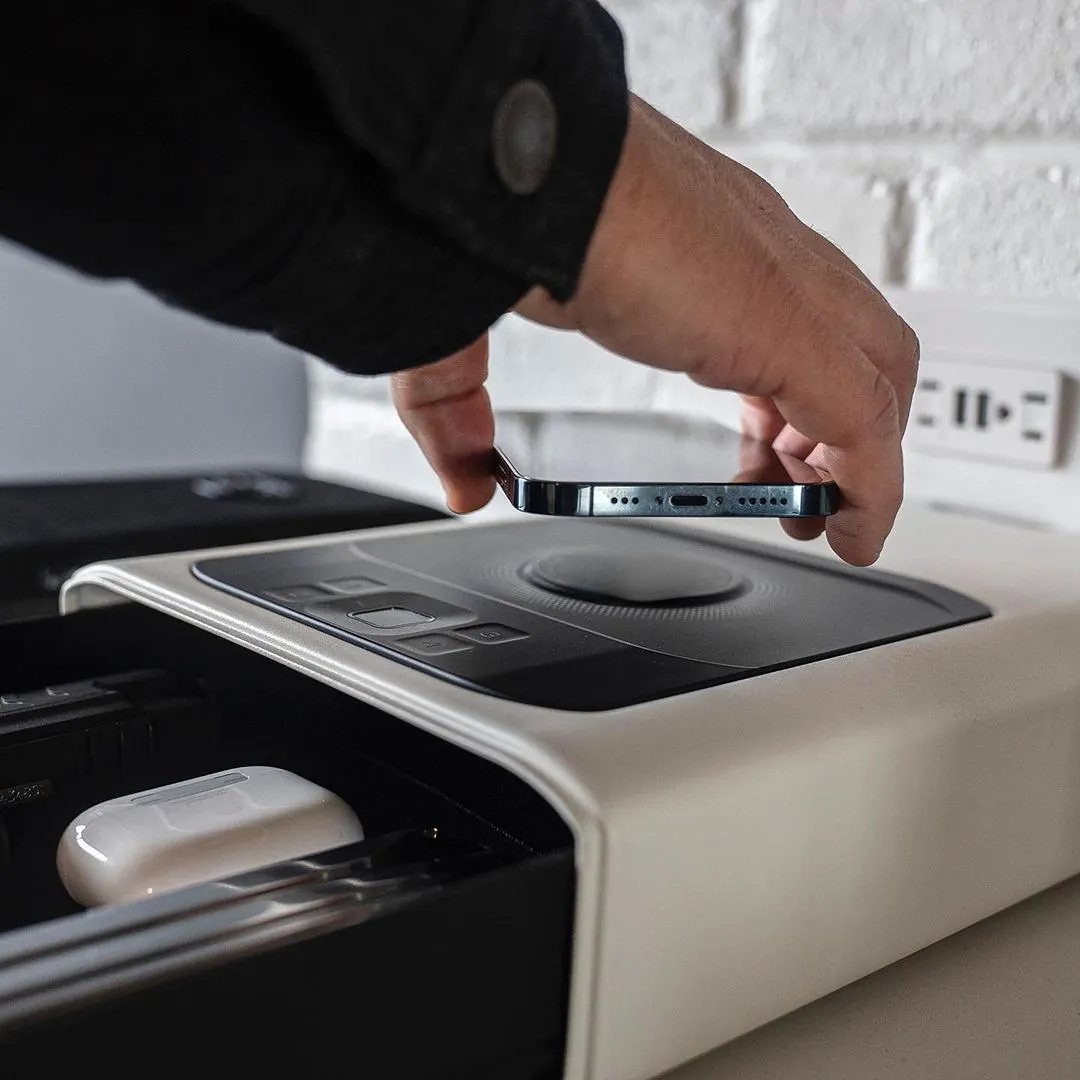 Advanced smart safe. Cutting edge touch display. Wireless phone charging.